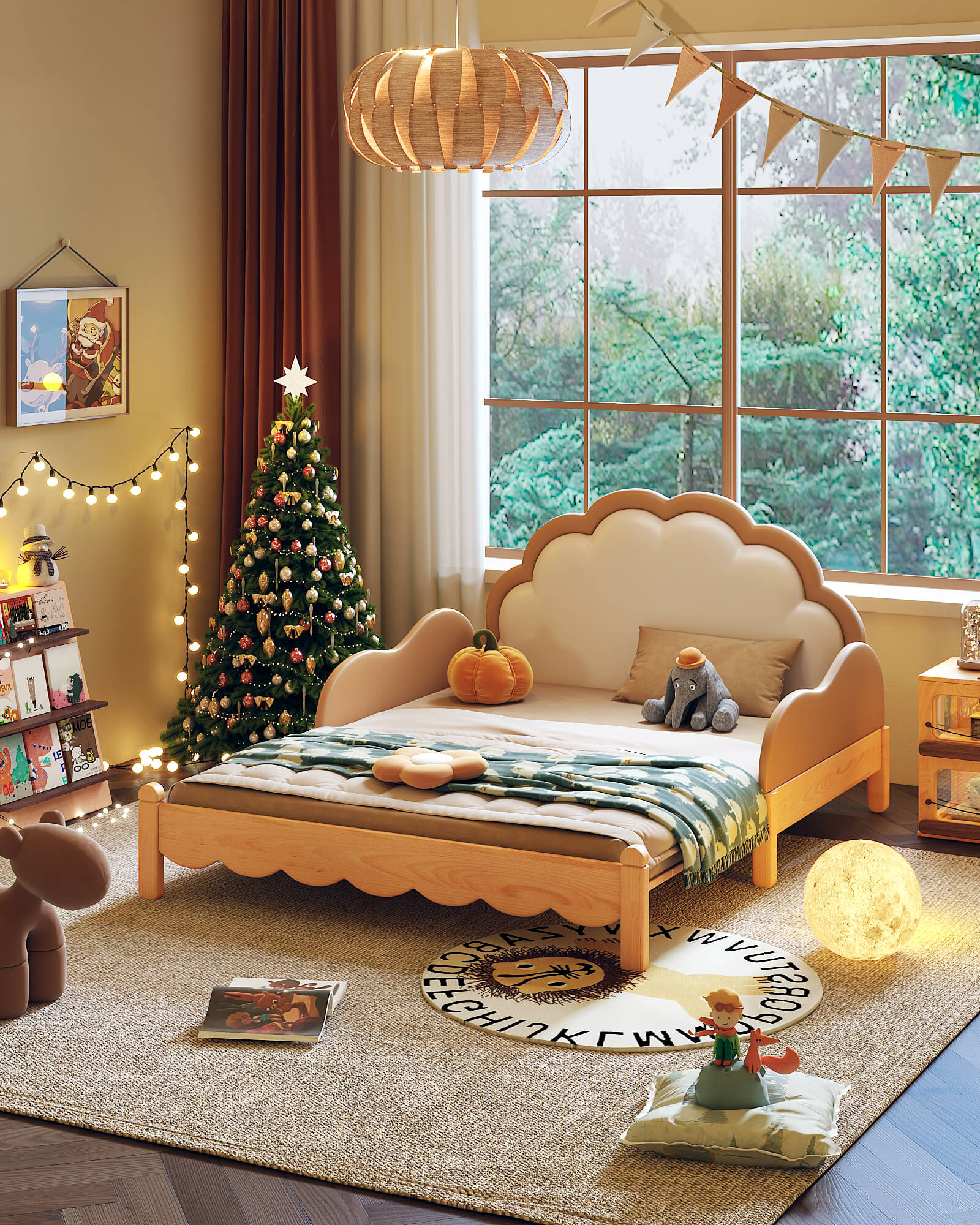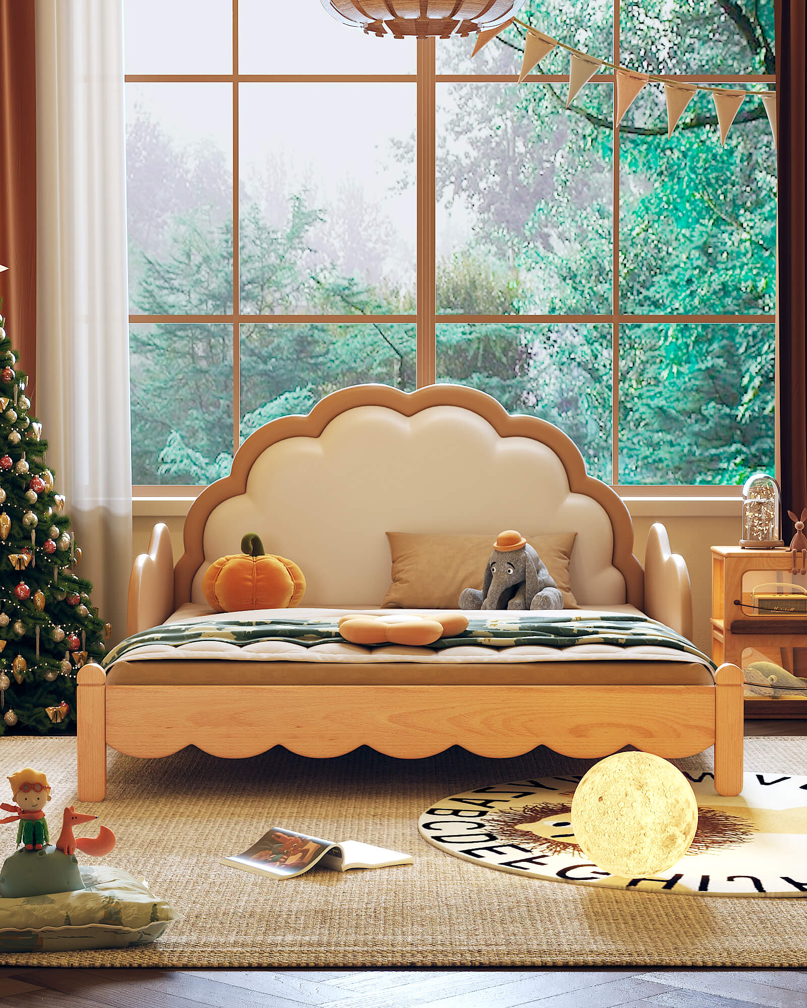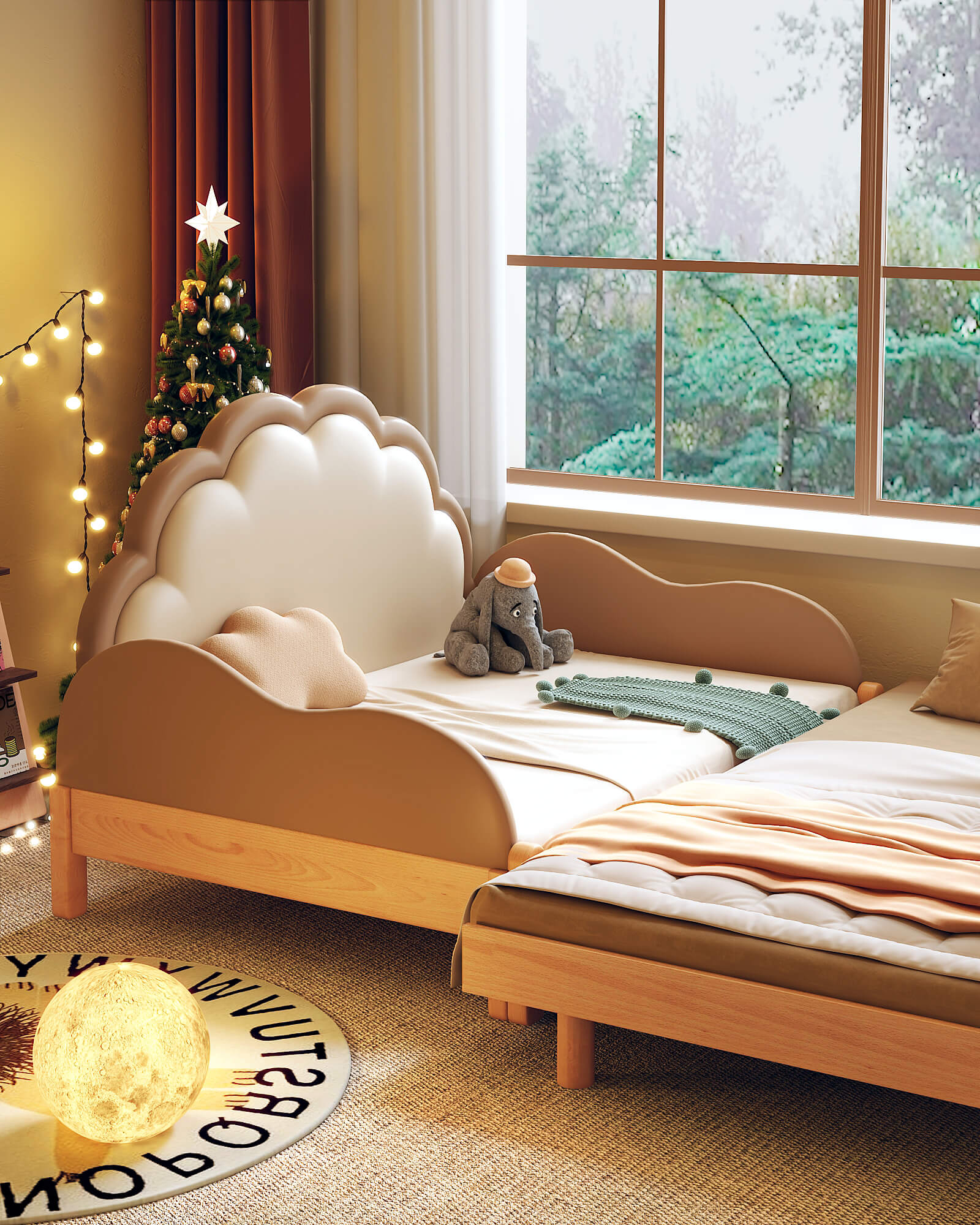 Discover Bini, a charming Convertible Kids Bed designed with a whimsical sheep-themed headboard. This Convertible Co-Sleeper Bed effortlessly connects to a parent’s bed, fostering closeness and comfort. It transitions into a larger bed as your child grows, combining playful style with functional design. Bini promises durability and adaptability, making it a delightful addition to any family home.