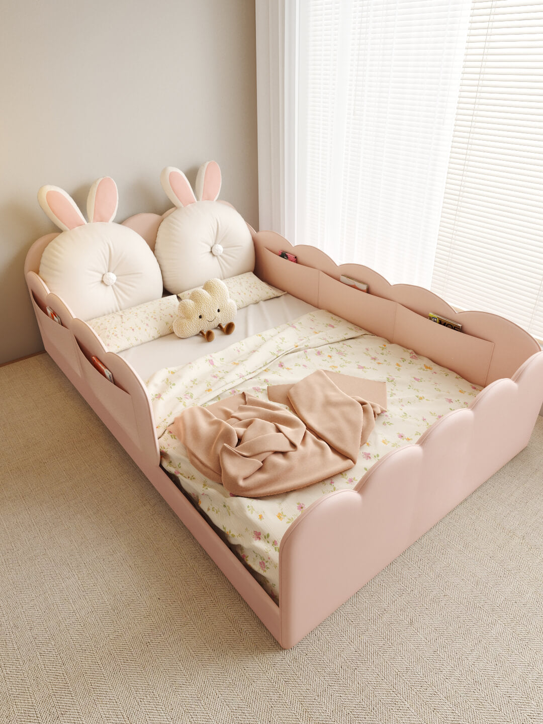 Imagine a bedtime scene featuring Bobo, the Safe Bed for Children that wraps safety in a charming bunny theme. Its cloud-shaped guardrails offer gentle protection, available in various sizes and colours to match any nursery. The design combines playful aesthetics with robust safety features, making it an inviting and secure spot for little ones. Crafted with care, Bobo provides comfort and peace of mind, creating a serene sleep environment.