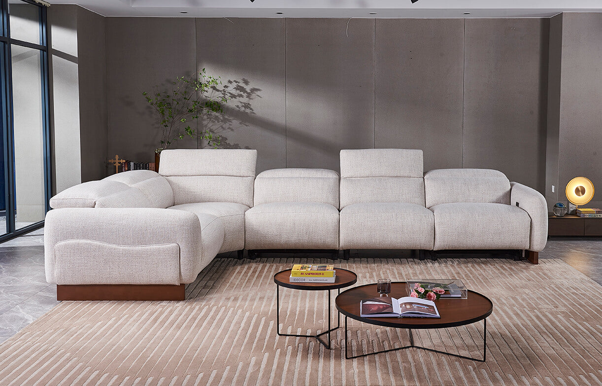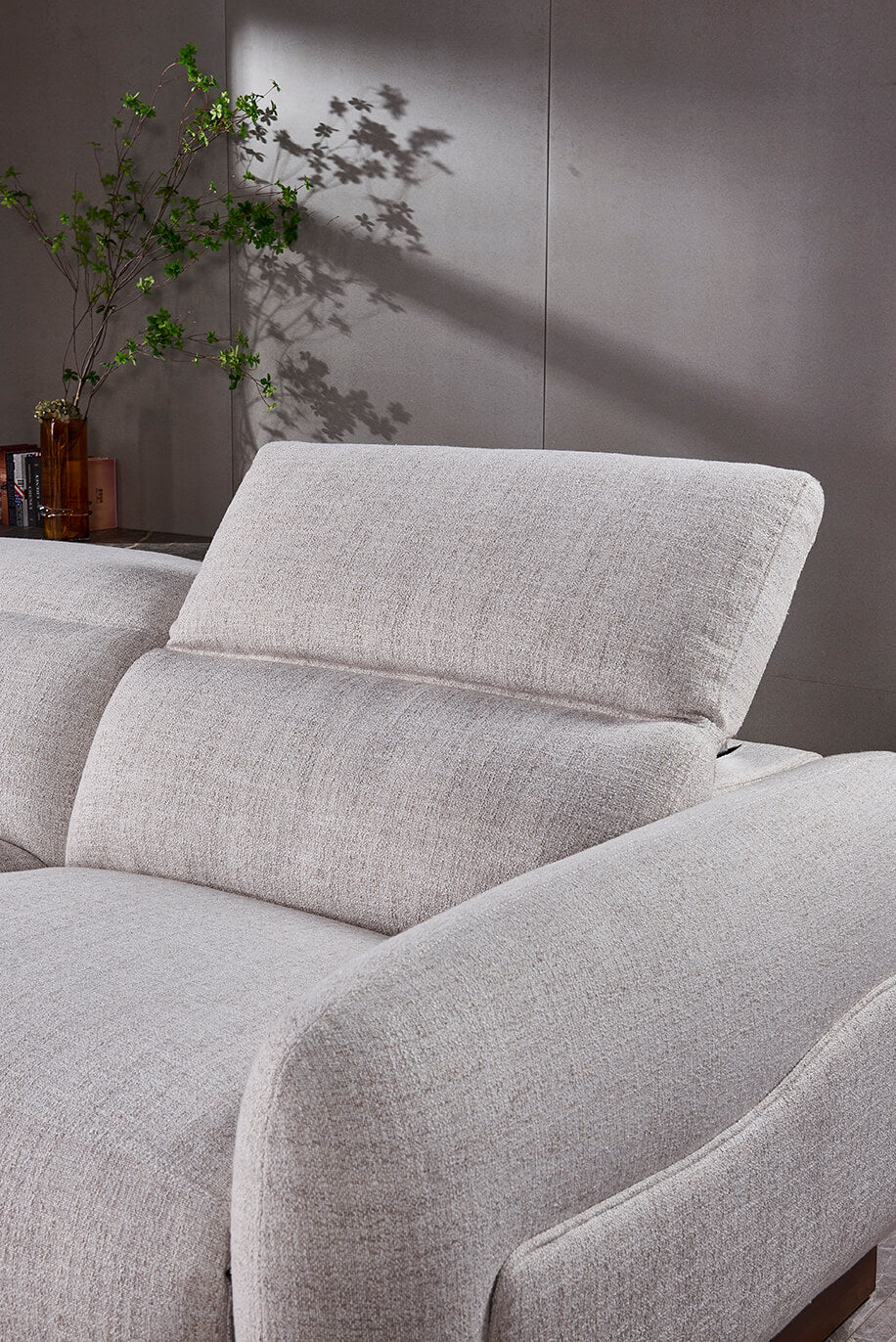 The Paxton Modular Fabric Sofa offers adaptable comfort with the flexibility to fit any living space. Upholstered in stain-resistant fabric, each module connects seamlessly, allowing you to build the layout that suits your lifestyle—whether as a corner sofa, extended chaise, or compact seating setup. It features motorised reclining, adjustable headrests, and USB + USB-C charging ports for effortless convenience.